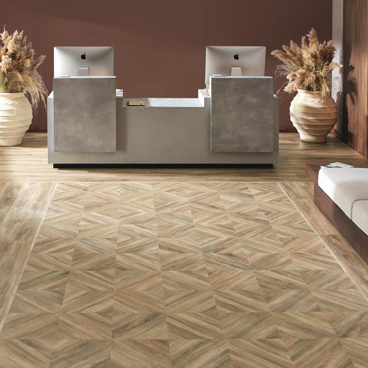 Langlebigkeit: Mit einer Nutzschicht von 1 mm und einer lebenslangen Garantie sind die Böden von Amtico widerstandsfähig gegenüber starkem Fußverkehr und behalten ihre Optik über lange Zeit.